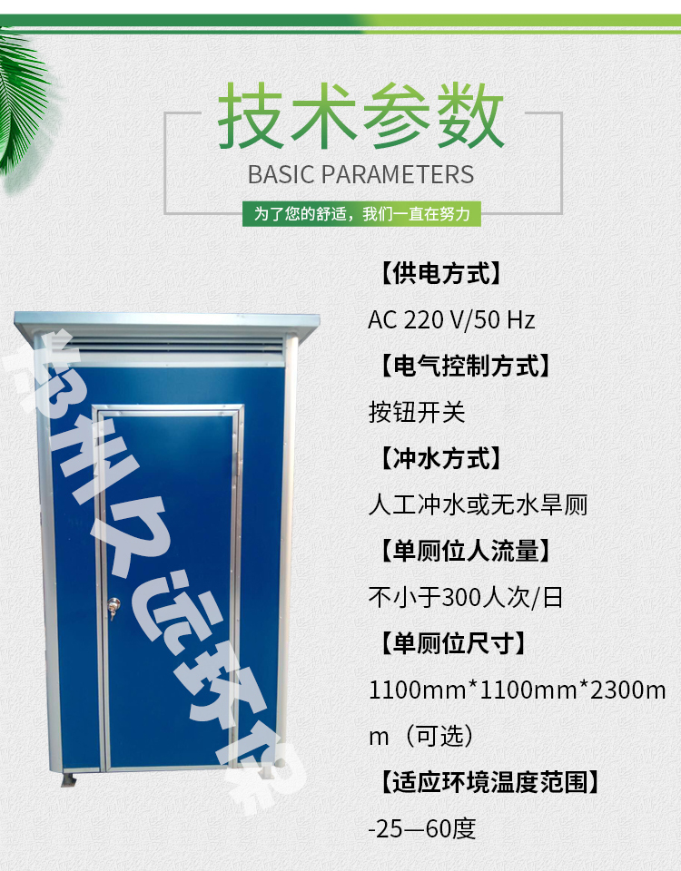 移動廁所不受任何工作環(huán)境的限制,外形結(jié)構(gòu)輕巧,顏色搭配合理。